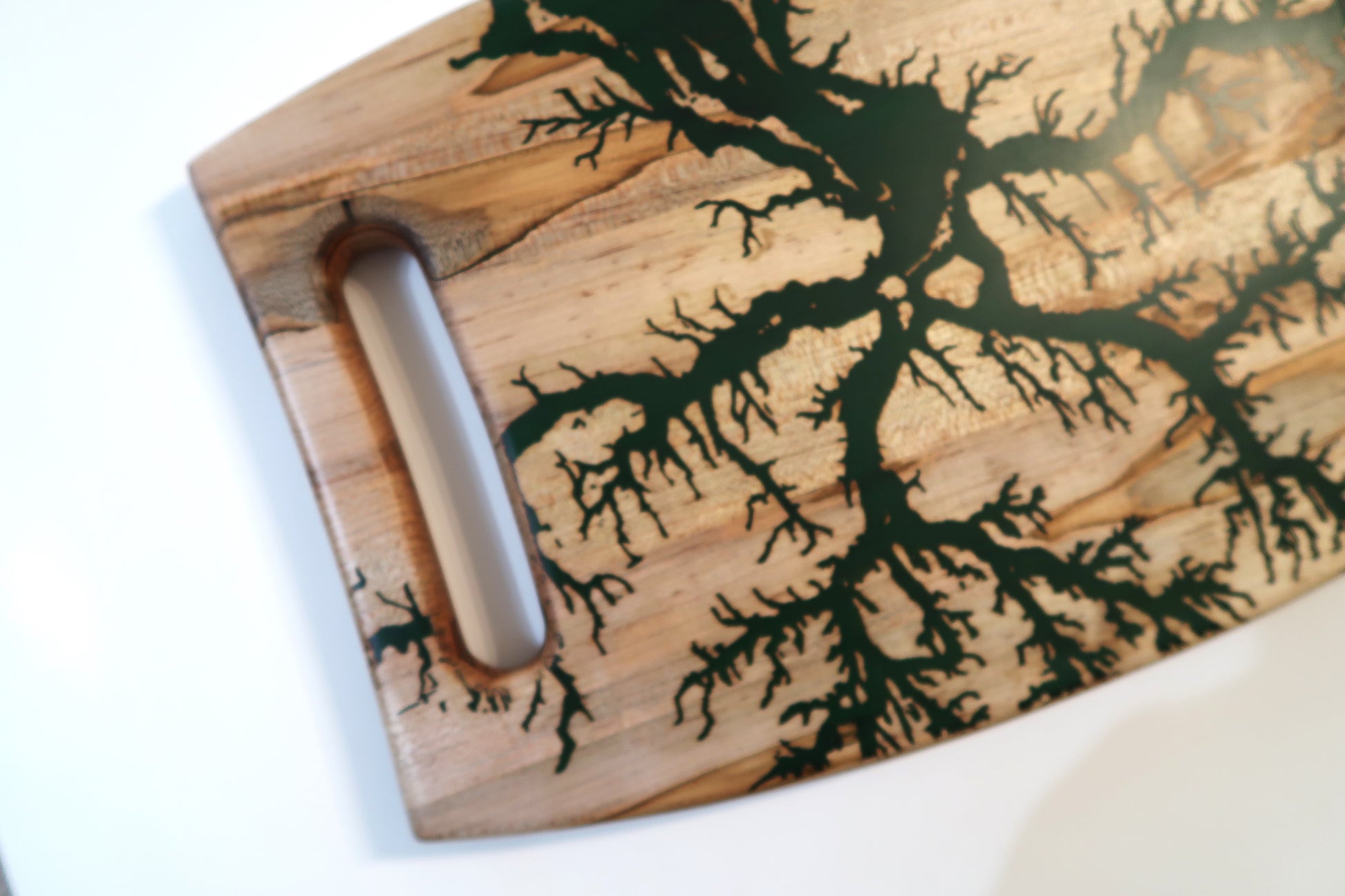 AMBROSIA MAPLE WITH RESIN "FRACTAL TREE" WARPED RECTANGLE SERVING BOARD