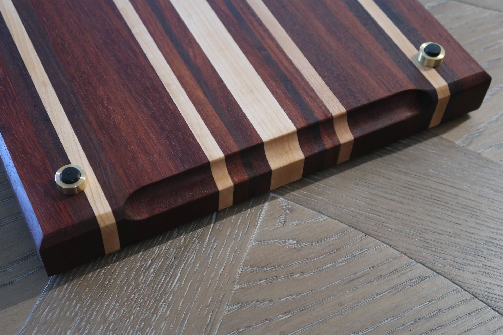 BRAZILIAN CHERRY MAPLE & WALNUT BUTCHER BLOCK CUTTING BOARD